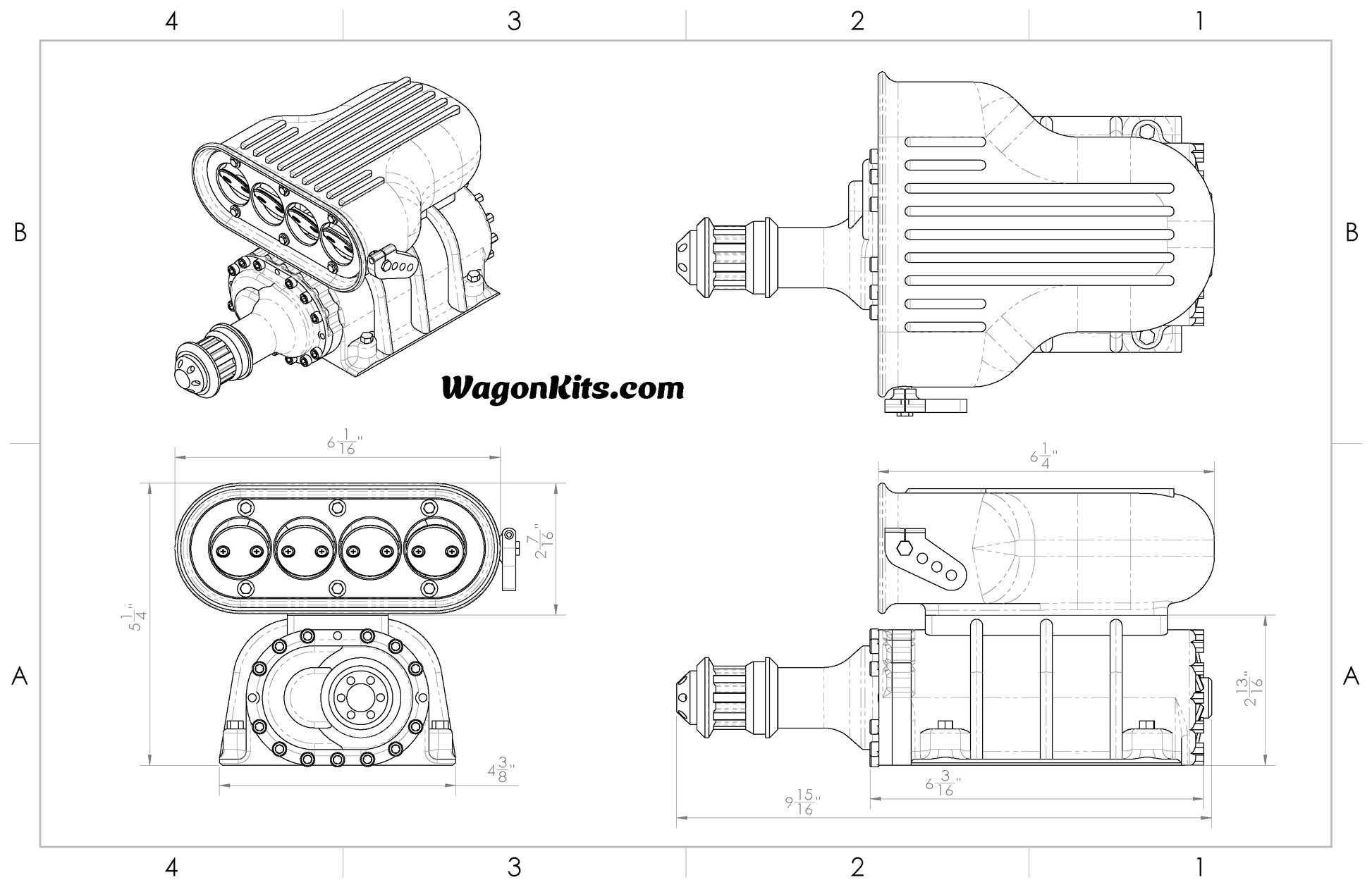 Nothing says "I'm fast" quite like the view of a supercharger sticking out of the hood of your hotrod. This little monster not only adds an intimidation factor to any build, but it's packed full of surprises. Bearing mounted spinnable pulley (compatible with actual L series timing belts) and lever actuated butterflies bring the realism to the hood of your ride. Fully modular, pieces sold individually or as an assembly. Available as a complete supercharger or with an angled cut for mounting to the surface of vehicles.